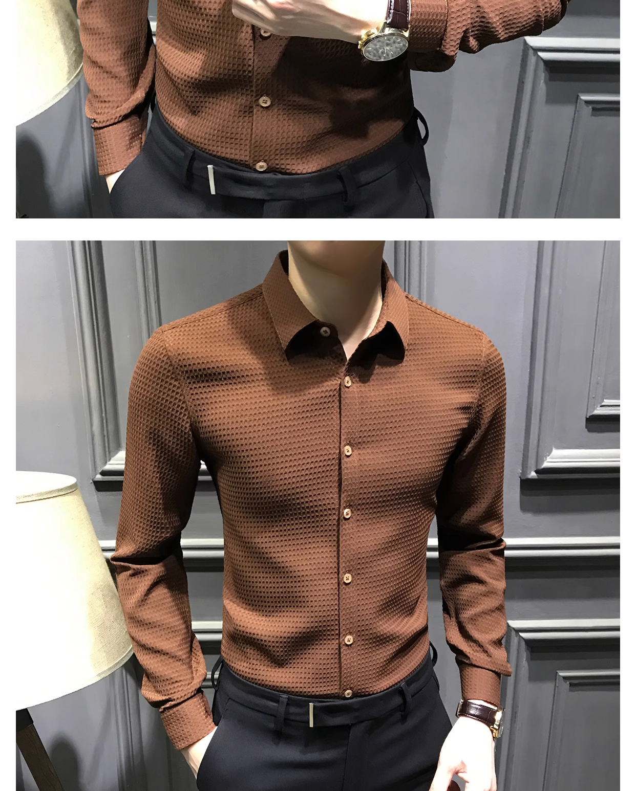 2023新款高级衬衫男士长袖秋冬修身加绒保暖衬衣高端上衣商务男装