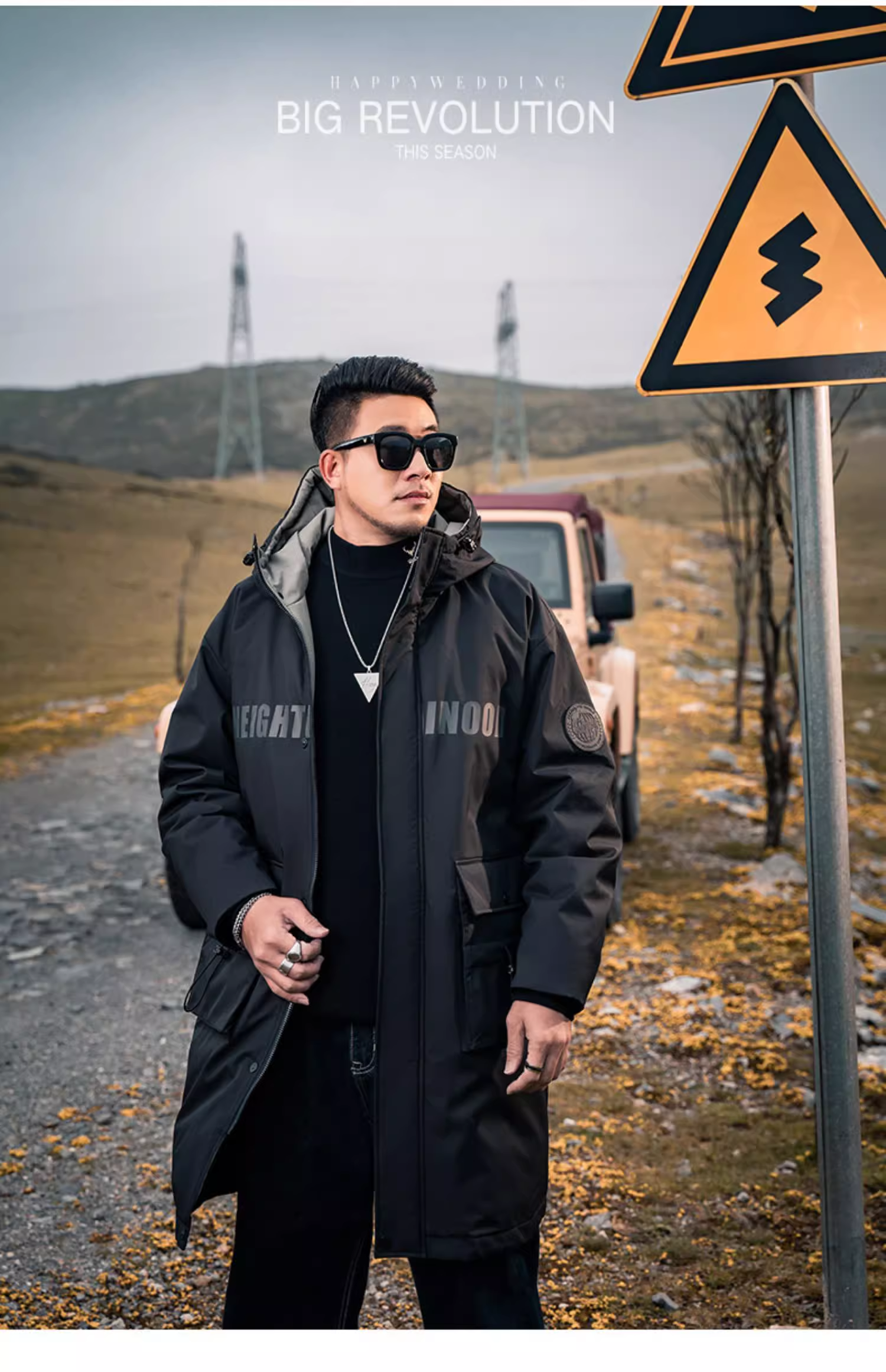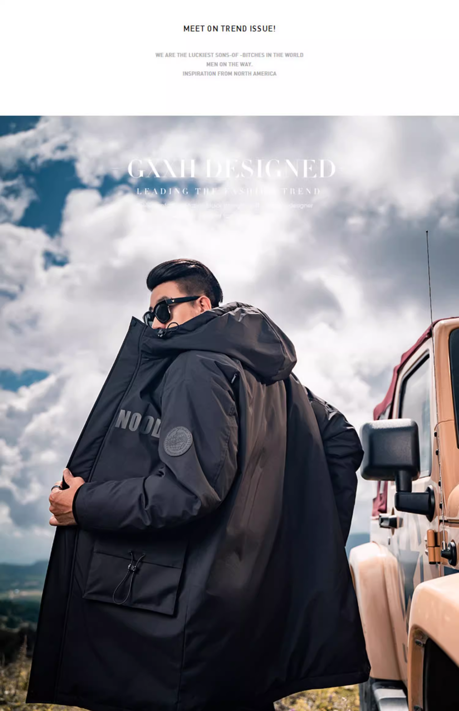 GxxH大码连帽加厚羽绒服男中长款男宽松休闲冬季加肥加大工装外套